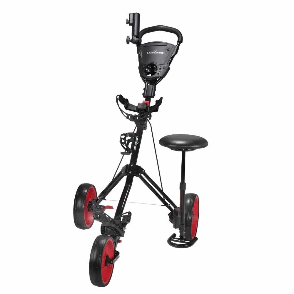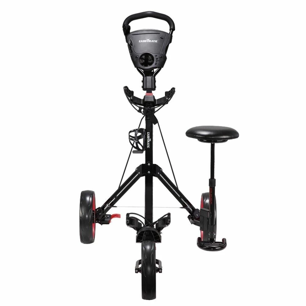 This is a premium golf cart with the added bonus of a built-in seat, perfect for a quick rest in between holes or whilst waiting for others to play.
