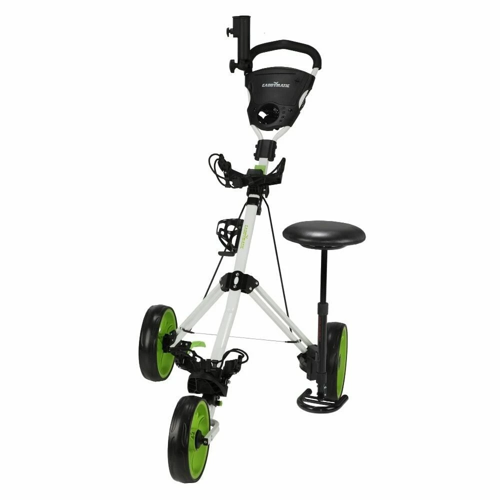 This is a premium golf cart with the added bonus of a built-in seat, perfect for a quick rest in between holes or whilst waiting for others to play.