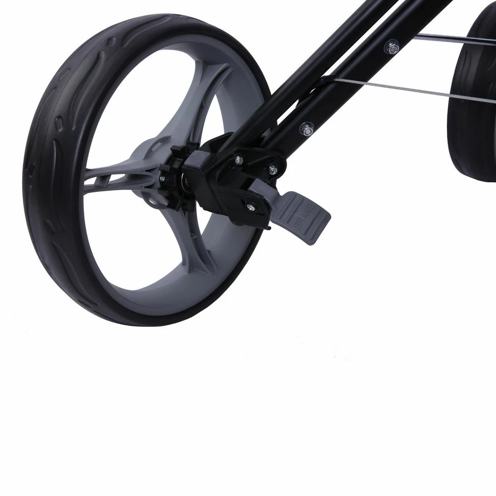 OTHER FEATURES – Foot brake, smooth running ball bearings in wheels, quick release wheels, adjustable handle angle