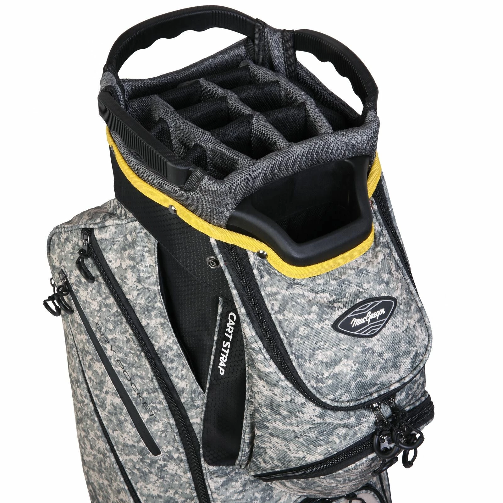 - KEEP IT ORGANIZED – 14 full length divider system plus external putter well for oversize putters. Function focused pockets such as valuables pocket, bottle pocket, apparel pockets and more