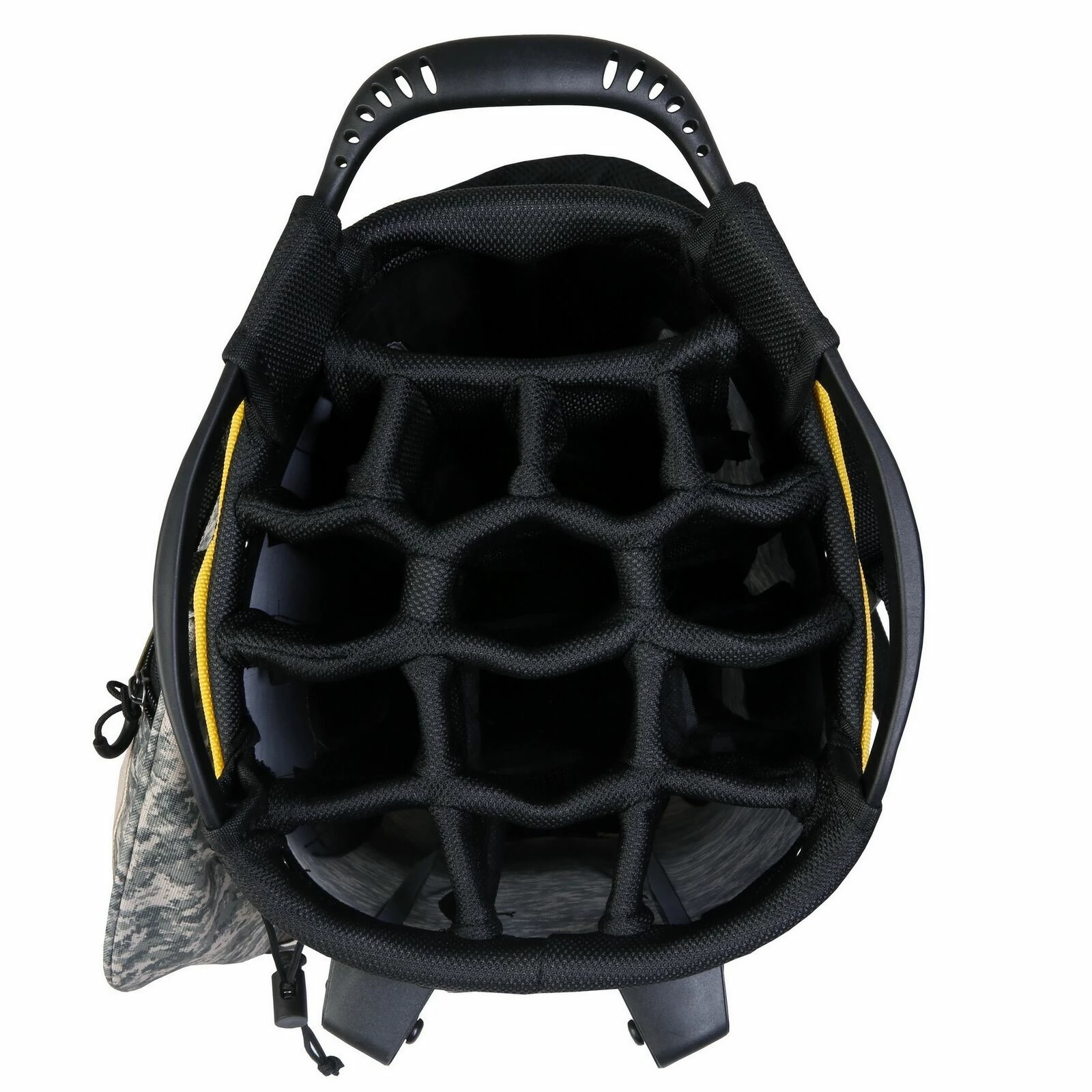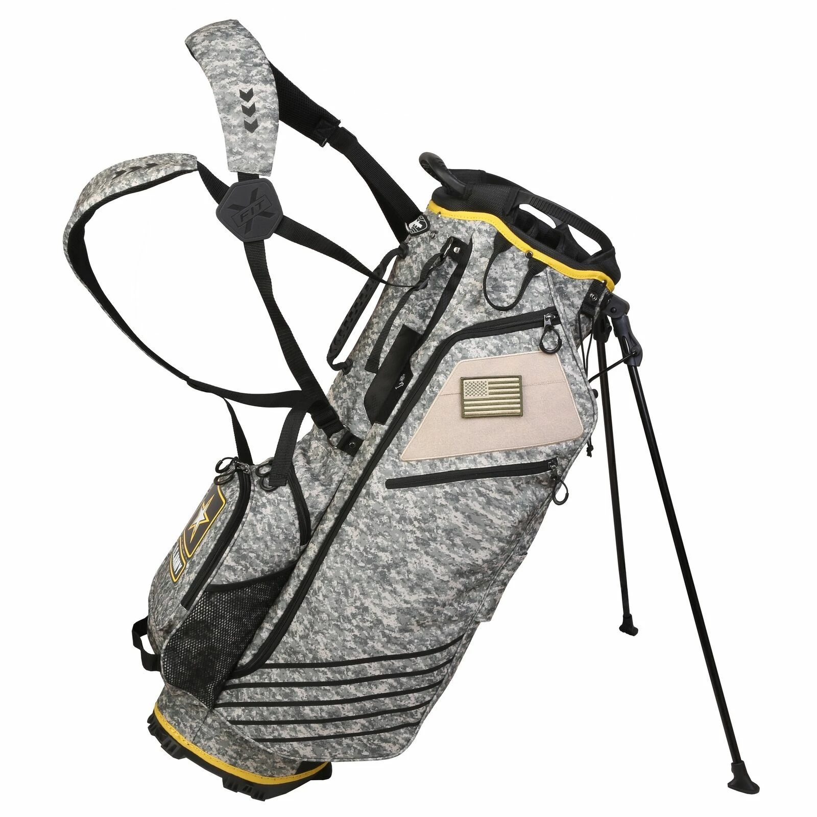 - MORE FEATURES – 6 total pockets / rain hood included / pen holder / Velcro glove holder / towel buckle / external umbrella holder / adjustable carry sling